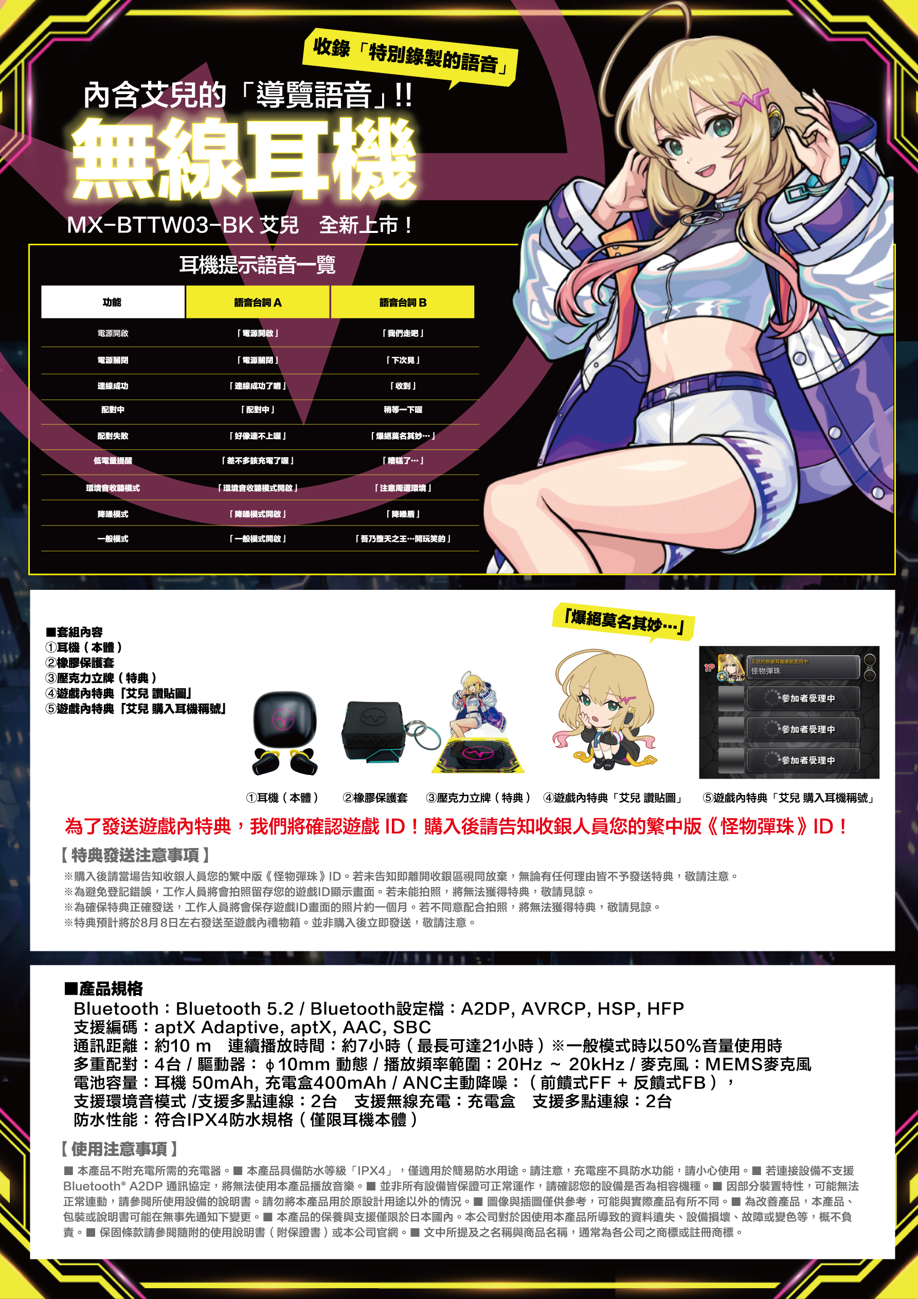 現場除了有DREAMDAZE Ⅲ特別繪製的艾兒與久遠限定週邊商品,還有「無線耳機 MX-BTTW0 艾兒」等眾多魅力商品恭候大家光臨!趕緊預約來場吧!